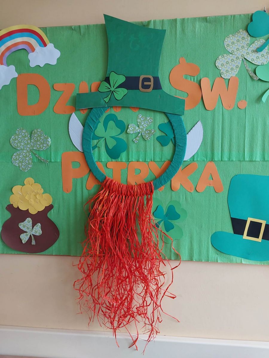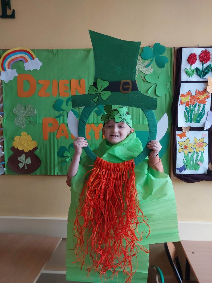 17.03.2023 roku w naszej szkole odbyły się obchody Dnia Świętego Patryka – patrona Irlandii. Był to dzień pełen radości, muzyki i zabawy. Najważniejszą tradycją obchodów Dnia św. Patryka jest noszenie ubrań w kolorze zielonym, czyli narodowym kolorze Irlandii. Tego dnia zarówno uczniowie jak i nauczyciele ubrali się ‘’na zielono’’. Na przerwach słuchaliśmy irlandzkiej muzyki oraz uczyliśmy się ‘’Irish Jig”. Zielone koniczyny, złote monety i inne prace dzieci przyozdobiły szkolne korytarze. Poznaliśmy tradycje i zwyczaje irlandzkiego święta oraz dowiedzieliśmy się kim był św. Patryk. Uczniowie klas 0-III brali udział w tygodniowej grze edukacyjnej na temat Irlandii i dnia św. Patryka. Obejrzeli filmy o Zielonej Wyspie i oznaczyli ją na mapie. Podczas kolejnych dni poznawali i wykonywali symbole związane z tym świętem (trójlistna koniczyna, garniec na złote monety, tęcza, irlandzki skrzat Leprechaun). Próbowali swoich sił w ludowym tańcu irlandzkim. Starsi uczniowie dowiedzieli się jak obchodzony jest Dzień św. Patryka w różnych częściach świata, np. zobaczyli paradę w Dublinie, barwienie rzeki na zielono w Chicago. Było wesoło, zielono i radośnie.