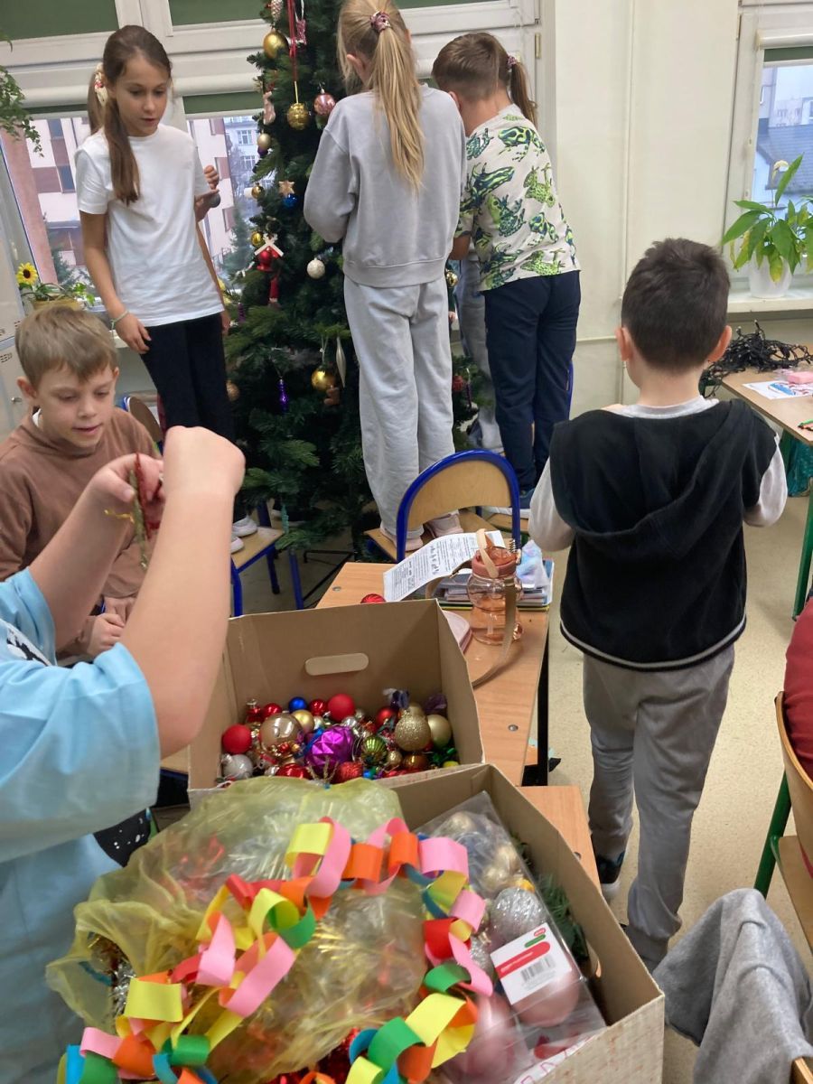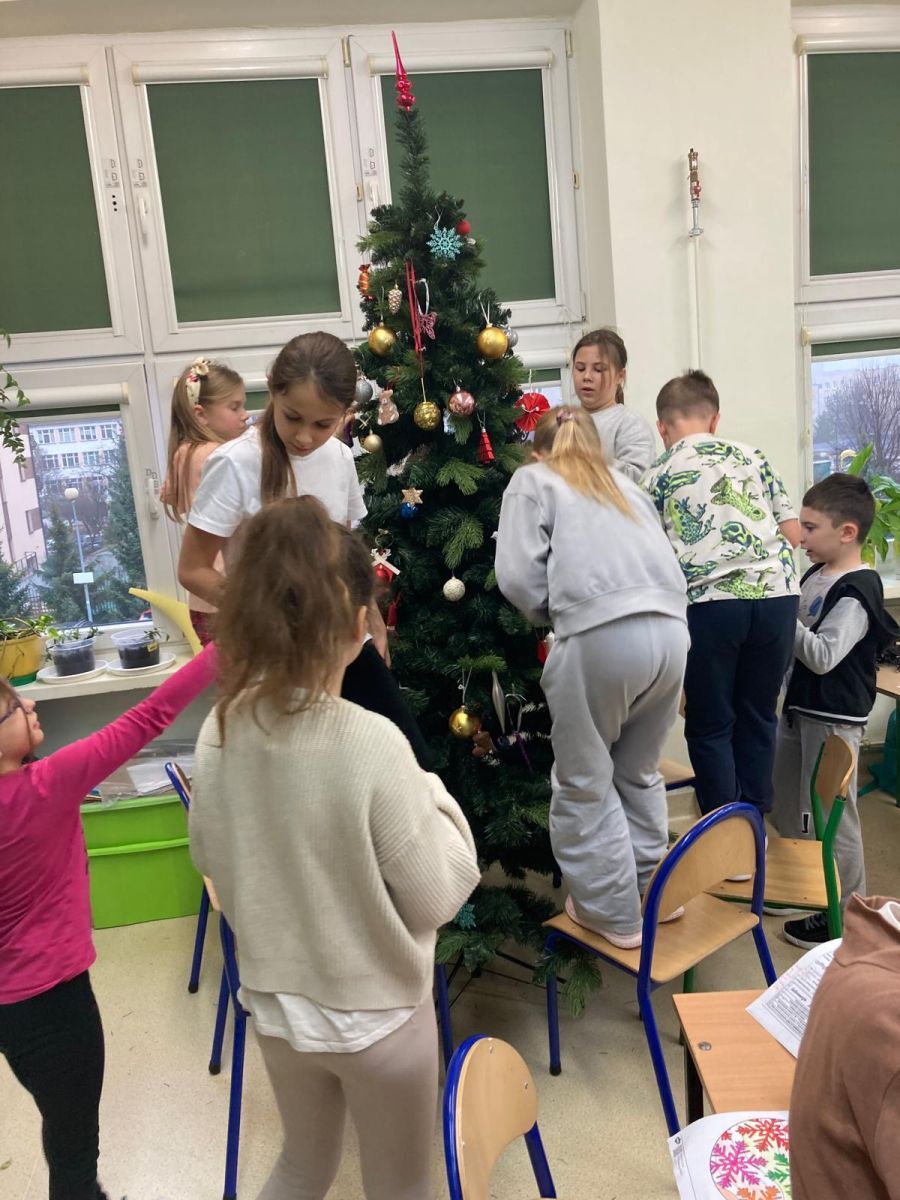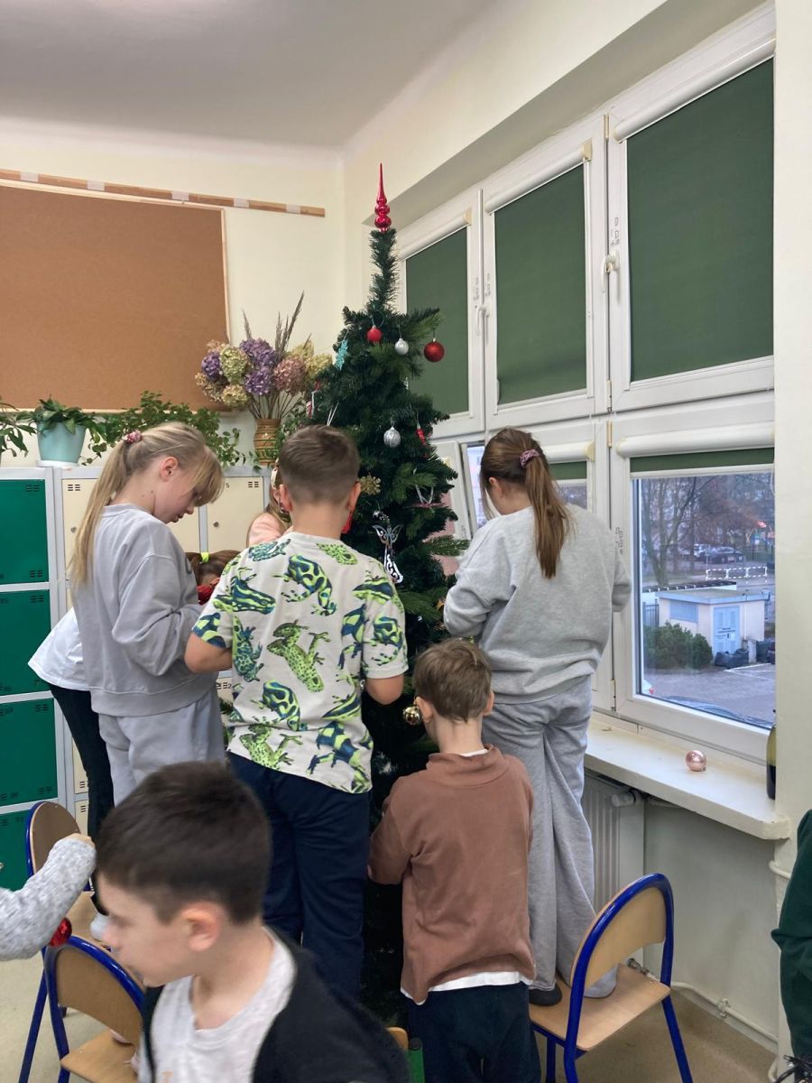 Z radością i zaangażowaniem uczniowie klasy 3b dekorowali klasowe drzewko. Prześcigali się z odszukaniem i zawieszaniem bombek, papierowych ozdób wykonanych przez siebie i kolorowych łańcuchów. Wszyscy oczekiwali na moment kulminacyjny- zapalenie lampek. Gdy choinka rozbłysła różnokolorowymi światełkami okrzyk uczniów był słyszalny w całej szkole. Skoro mamy choinkę, to czas na paczki mikołajkowe. Jako, że grudzień się zaczął to święta tuż tuż. Wesołych Świąt!🎅🎄🌲🎁