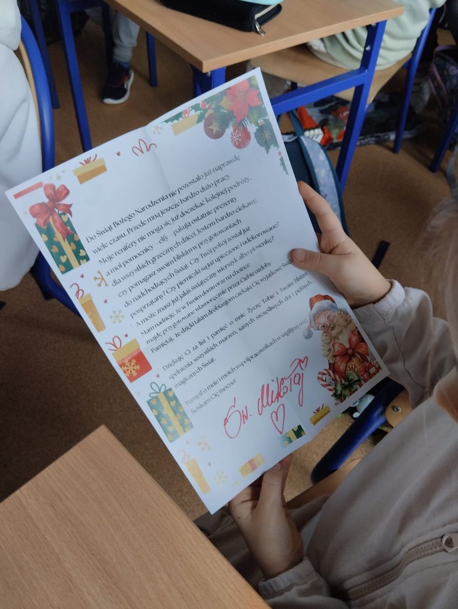 Dzieci z wielką radością czytały list, w którym Mikołaj podziękował za piękne słowa, pochwalił uczniów za dobre zachowanie i życzył im wesołych, pełnych uśmiechu Świąt.🎄🌟🎅