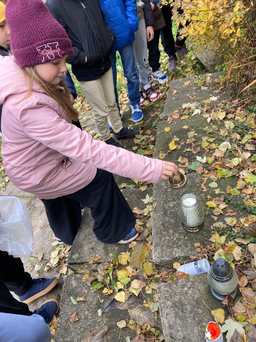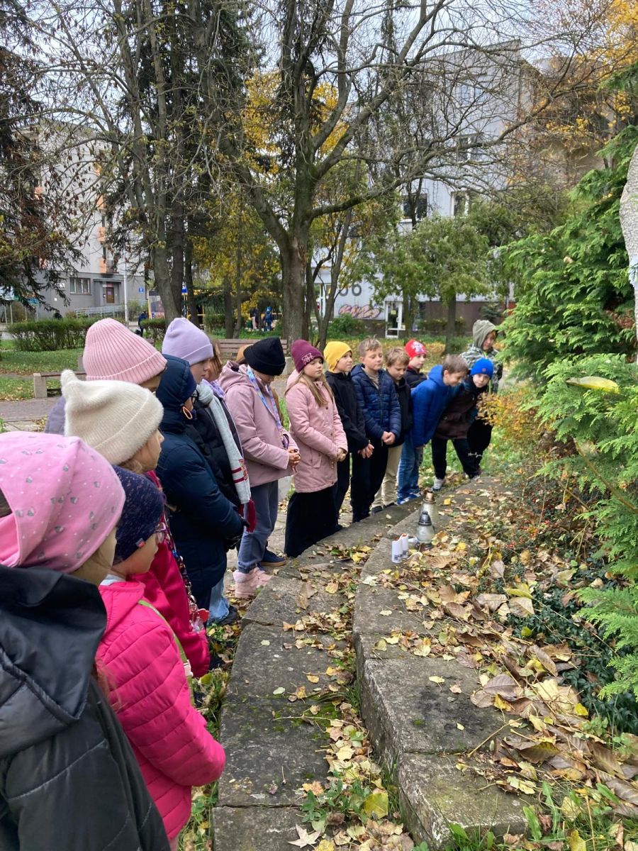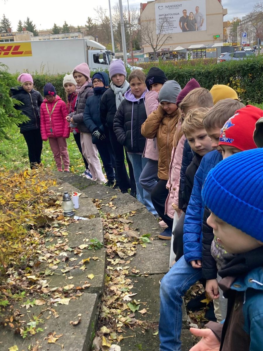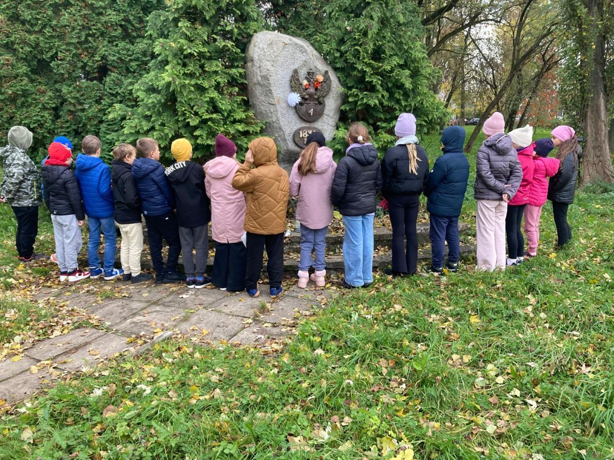 Klasa 3b uczciła pamięć poległych żołnierzy odwiedzając miejsce pamięci przy zbiegu ulic Zagórskiej i Źródłowej. Minutą ciszy oddaliśmy hołd i zapaliliśmy symboliczny znicz. Przy okazji spaceru alejkami Osiedla KSM obserwowaliśmy zmiany w przyrodzie o tej porze roku . Zbieraliśmy liście, z których bukiet zdobi jesienny kącik w sali.