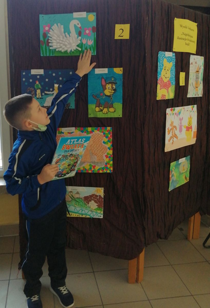 Uczniowie klas 1-3 wzięli udział w konkursie zorganizowanym przez bibliotekę szkolną "Najpiękniejsza ilustracja do ulubionej bajki".
