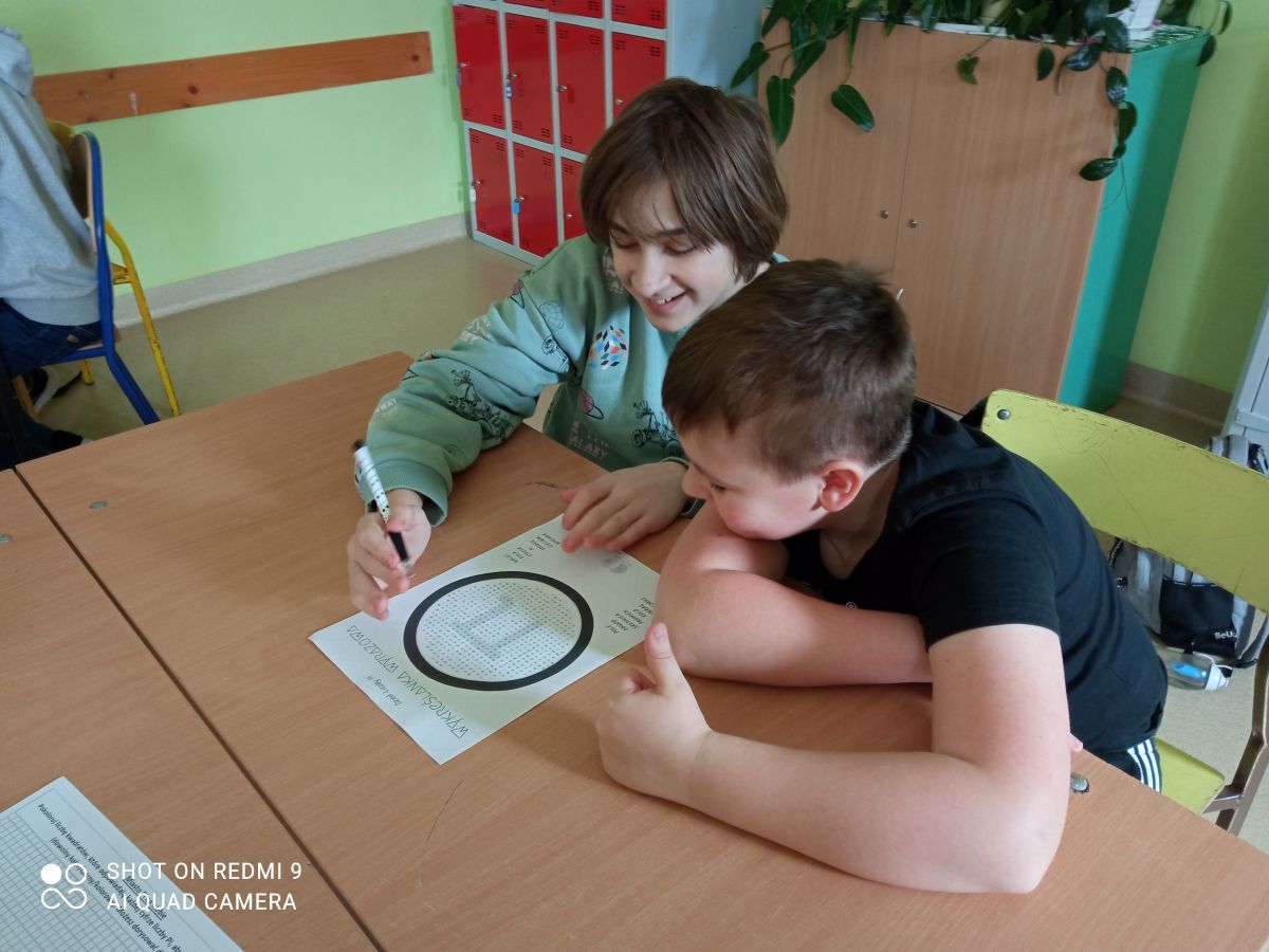 14 marca 2023 r. na lekcjach matematyki w klasach IV-VI bohaterką była liczba Pi. Święto Liczby Pi to wydarzenie, którego data dyktowana jest przez 3 pierwsze cyfry liczby π: 3,14…  Jest to amerykański zapis daty 14 marca. Liczba Pi nazywana jest czasami stałą Archimedesa, w uznaniu jego zasług. Jej kolejne określenie – Ludolfina – pochodzi od Ludolpha van Ceulena, który przedstawił tę liczbę z dokładnością do 35 miejsc po przecinku. Jej historia jest długa i bardzo bogata. Nasi uczniowie pokrótce mieli okazję ją poznać podczas zajęć warsztatowych. Lekcje uatrakcyjniały ciekawe zadania i łamigłówki tematycznie związane właśnie z liczbą Pi. Wszystkim uczniom spodobała się inicjatywa włączenia się w obchody Święta Liczby Pi. Zapowiedzieli, że w przyszłym roku również ochoczo będą obchodzić urodziny Ludolfiny.