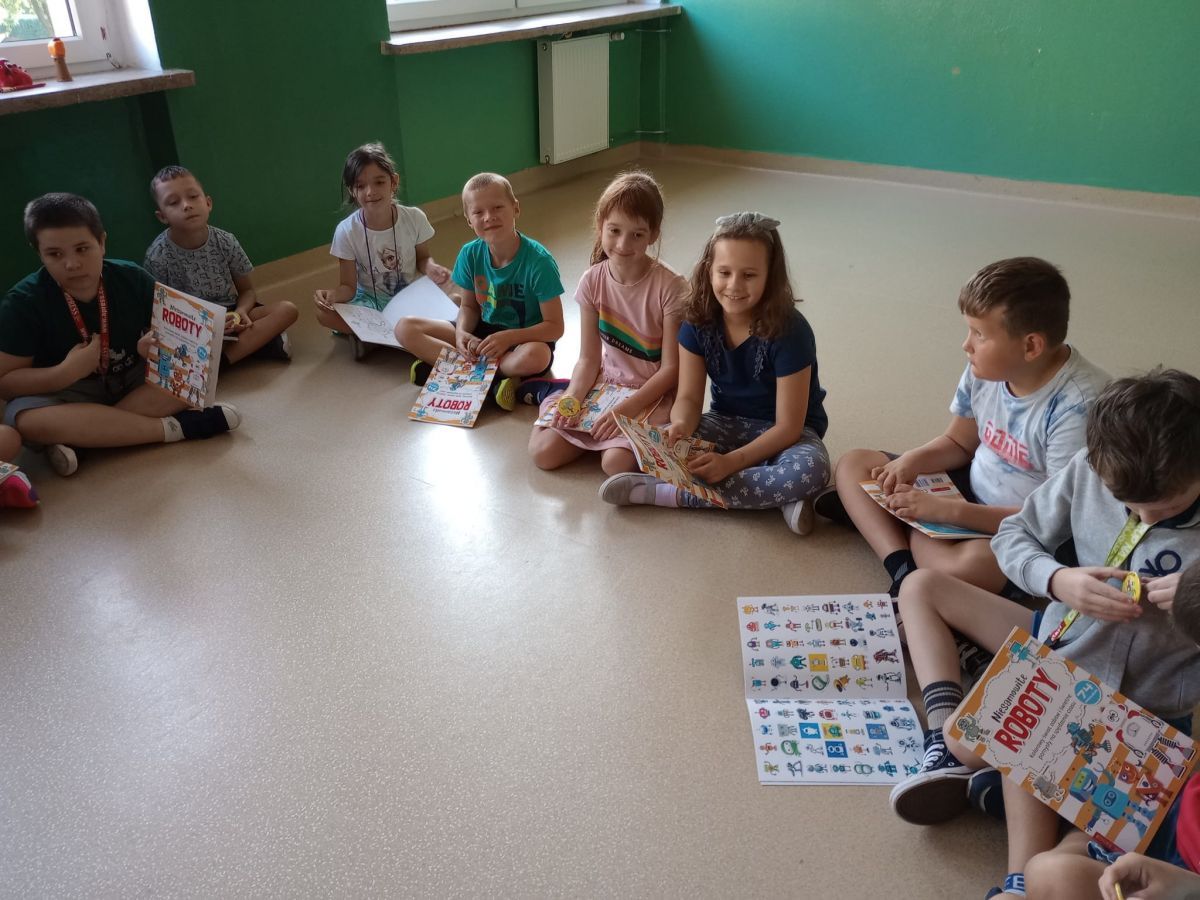 Na sam koniec spotkania uczniom zostały wręczone pamiątkowe kolorowanki pt. "Niesamowite roboty" i przypinki, tematycznie powiązane z projektem.
